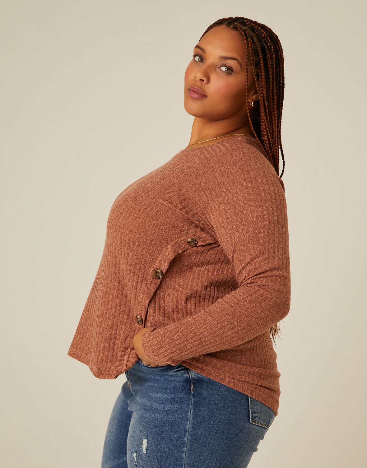 Having lots of easy, comfortable tops to wear is a sign of a complete wardrobe, and the?Curve Button Detail Ribbed Top is a perfect option.