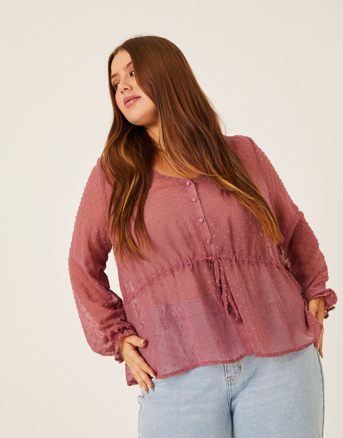 A romantic, feminine top, the?Curve Sheer Swiss Dot Blouse is great for date night or any night out. This plus size sheer top looks?great paired with a?dark pair of or a? simple and some cute boots for a date night look.