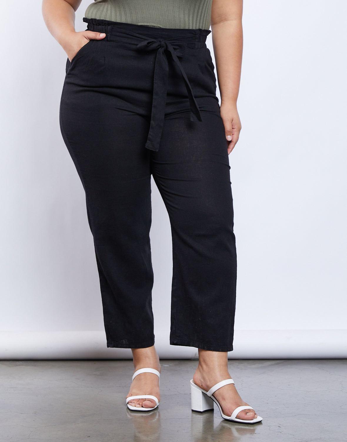 - These plus size pants are made from a soft and breathable blend of materials and feature a high waist with a tie, wide legs, and a comfortable loose fit.